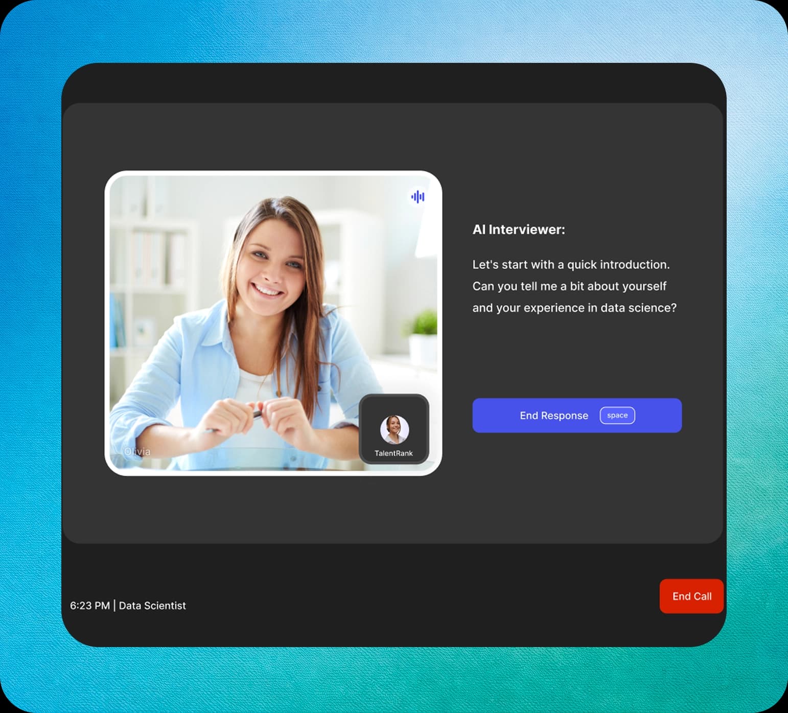 TalentRank conducts real-time, human-like AI interviews to hire top talent at scale.