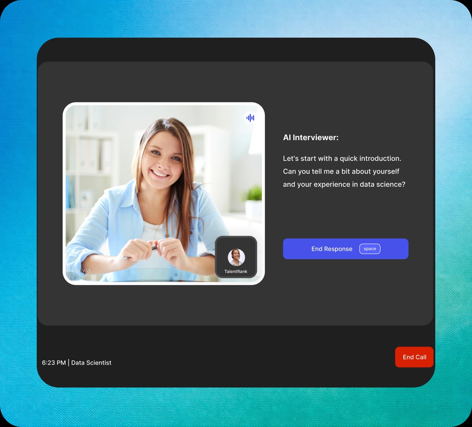Conduct natural, real-time interviews with AI using TalentRank and simplify your hiring process effortlessly.